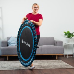 The compact fitness trampoline (available in 3 sizes) enables you to get fit with a varied and joint-friendly training at home. Not only does the trampoline look good but also has great jumping properties and the foldable legs allow you to easily store the trampoline away.